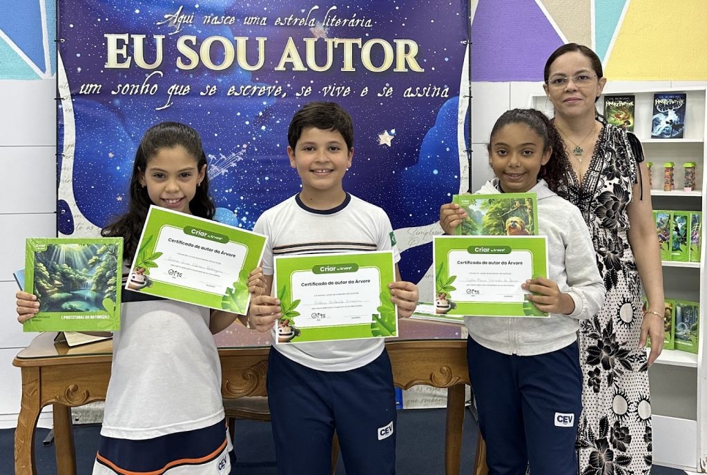 A etapa final dessa iniciativa, claro, deu vida a momentos muito especiais em todas as unidades do CEV Colégio: “para celebrar a conclusão deste trabalho extraordinário, organizamos um evento de entrega dos livros impressos. Convidamos um acompanhante por criança para compartilhar conosco este marco significativo, que aconteceu no turno da manhã, na respectiva unidade de ensino dos participantes”, acrescenta Viviane.