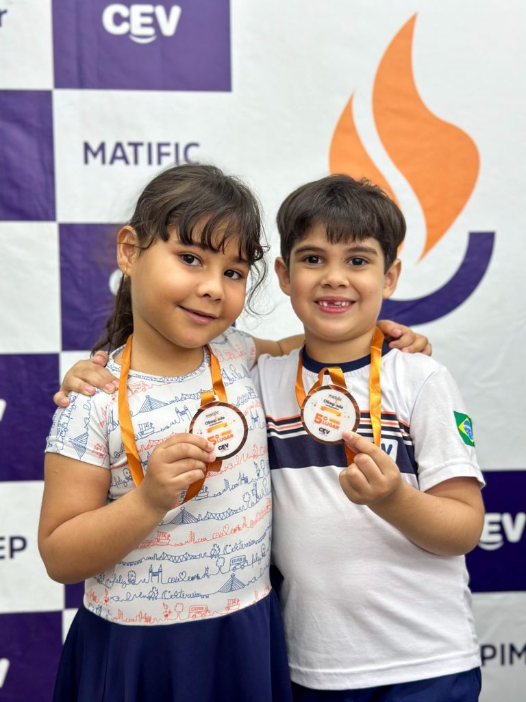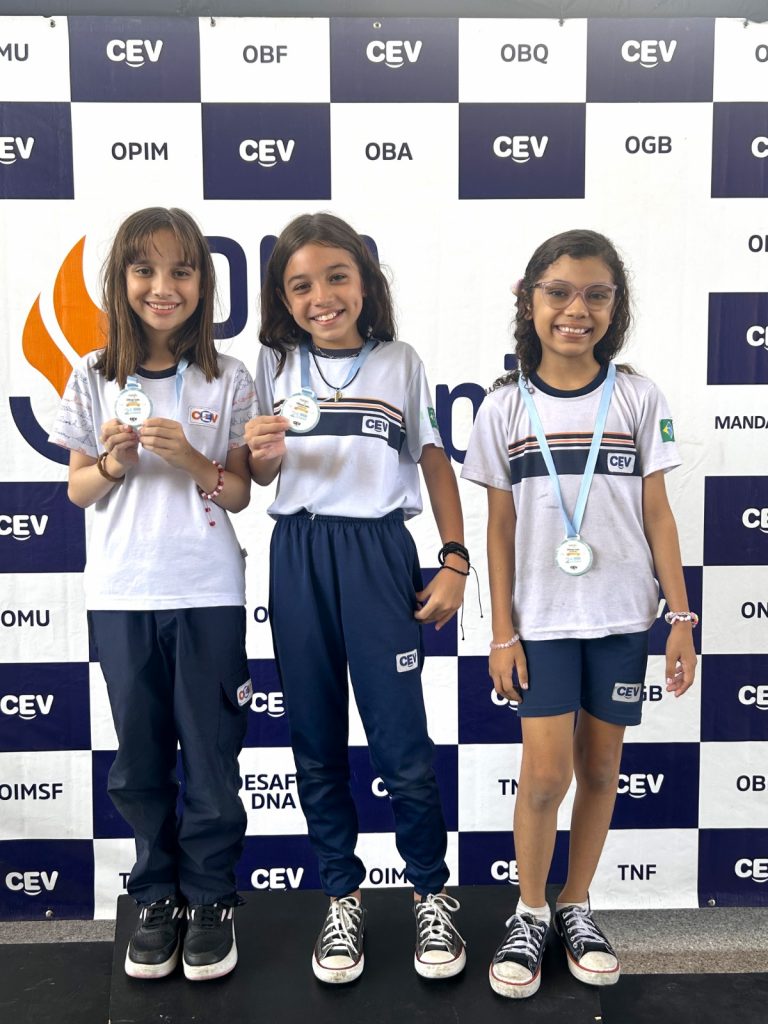 “As medalhas carregam o peso das conquistas com entusiasmo. Nosso compromisso é com a excelência acadêmica e com a valorização do esforço desses alunos. Vê-los percorrendo uma trajetória de sucesso desde pequenos nos enche de orgulho. Parabéns aos alunos e aos professores também, que embarcam nessa jornada junto com eles e vibram a cada vitória”, declara Lígia Alves, coordenadora das turmas olímpicas do CEV.