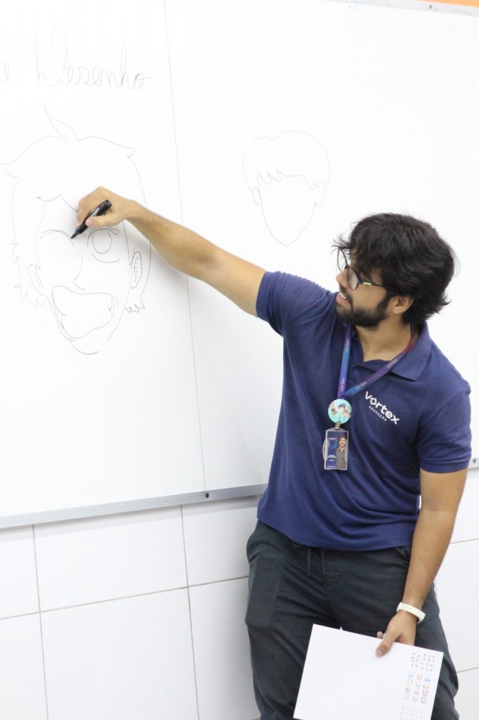 O curso é ministrado pelo ilustrador da Vortex Educação, Gustavo Mascarenhas, que ensina desde o básico, como desenhar figuras humanas, até técnicas mais avançadas, como estilo de desenho japonês.