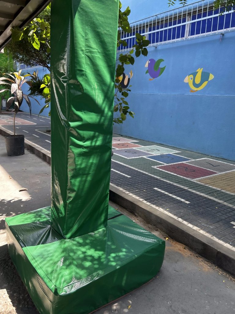 Os móveis foram fixados na parede; as tomadas estão mais altas, para uso exclusivo dos adultos; espelhos ganharam películas protetoras; assim como as extremidades das lousas receberam proteção reforçada. Também estão sendo instaladas redes de proteção em pontos estratégicos; novos brinquedos no parquinho, material acolchoado principalmente nas áreas de maior circulação dos babies; piso aderente; sinalização nas escadas e reforço das grades de rampa.