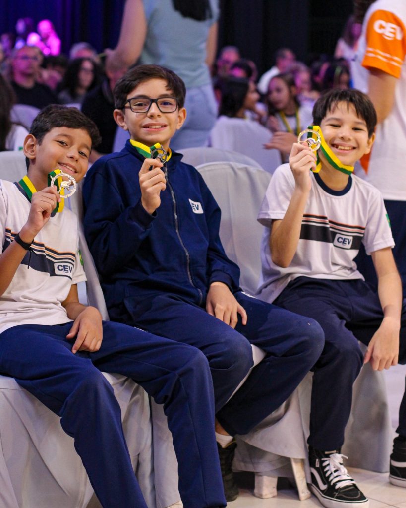 Somando cada vez mais medalhas conquistadas em competições de conhecimento, os estudantes do CEV Colégio subiram ao pódio para receberem suas premiações da Olimpíada Canguru de Matemática 2025. Este ano, 275 alunos do Ensino Fundamental ao Ensino Médio do CEV Colégio foram medalhistas no desafio.