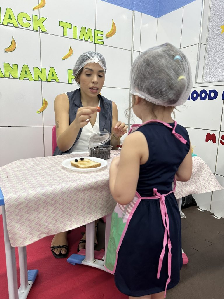 “Essa vivência prática torna o aprendizado do inglês mais leve, divertido e espontâneo. É incrível acompanhar a evolução deles, ver as crianças reconhecendo cores, animais, formas geométricas e objetos de forma natural, sem decorar, apenas associando. Assim, eles ficam preparados para explorar o idioma no dia a dia. Juntos, ajudamos as crianças a romper barreiras linguísticas e a se conectar com o mundo”, explica a professora Géssik Ravena.