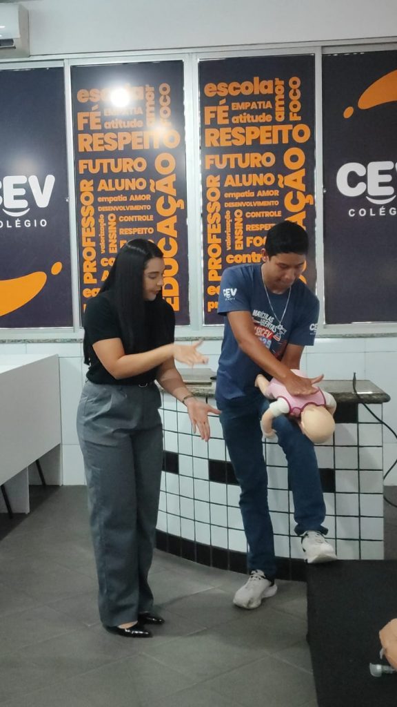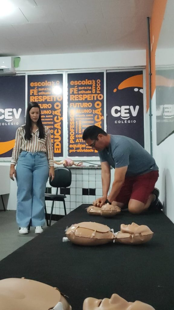 No CEV Parnaíba, professores e colaboradores também participaram de um treinamento de primeiros socorros, reforçando o cuidado e a prevenção no ambiente escolar. A ação foi conduzida por três profissionais de saúde, que compartilharam conhecimentos essenciais para agir com responsabilidade e prontidão em situações de emergência.